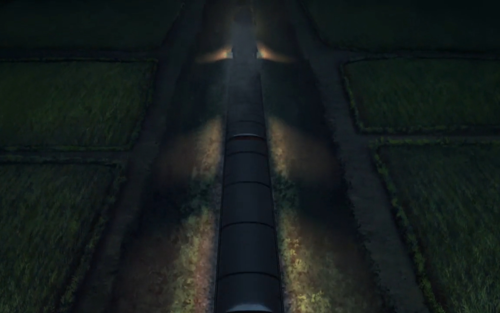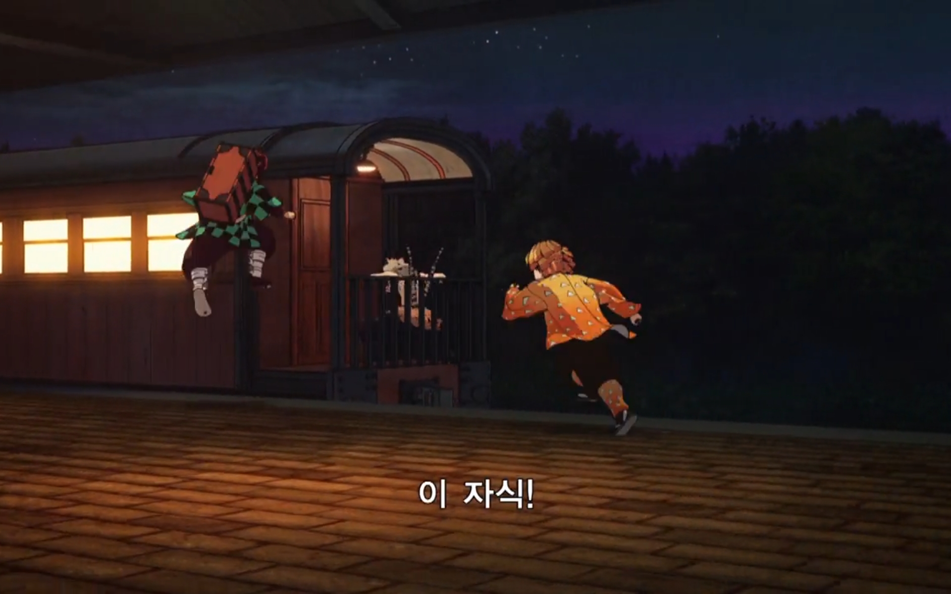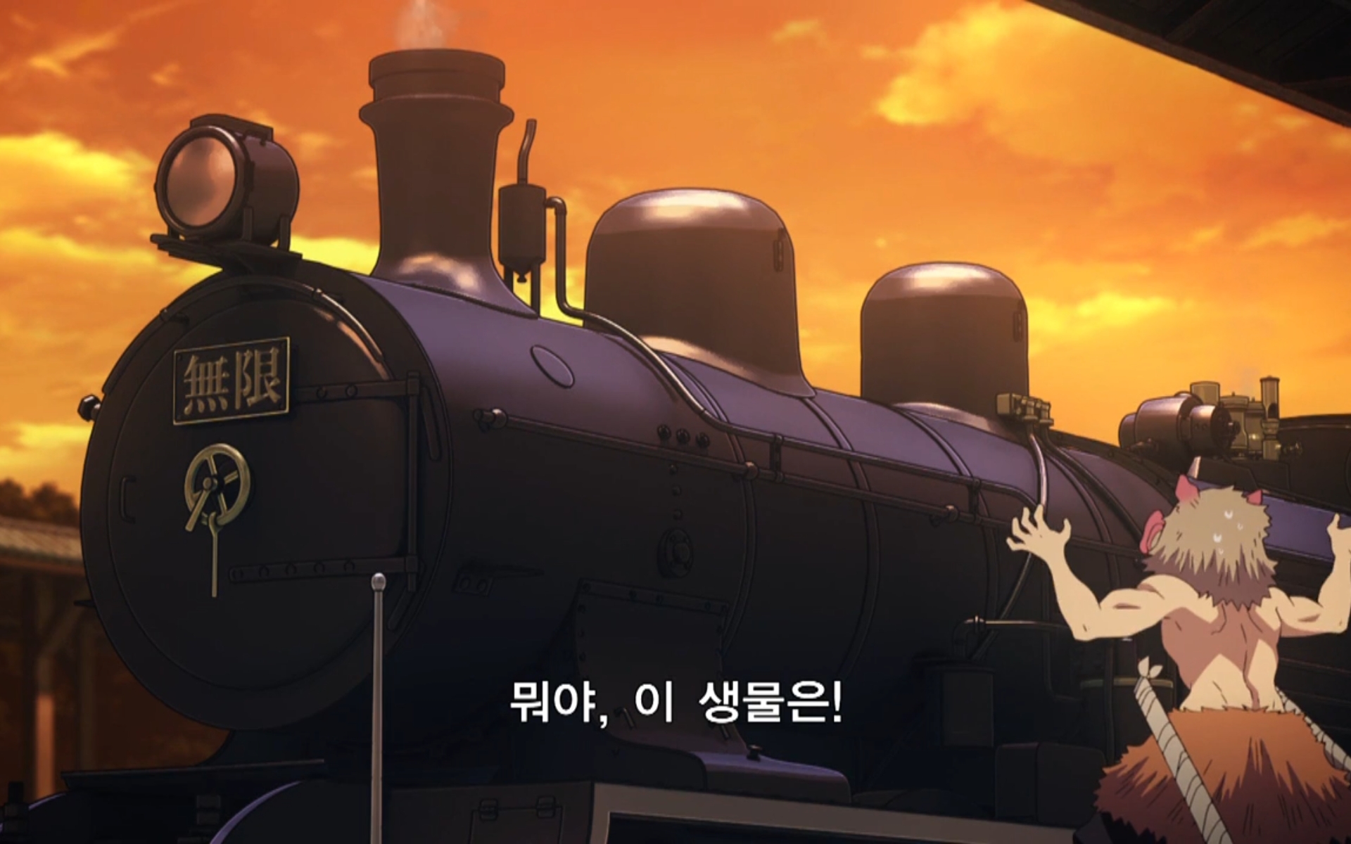극장판의 주요 무대인 열차도착이다. 보이는 멧돼지머리 가면의 소년은 이노츠케.