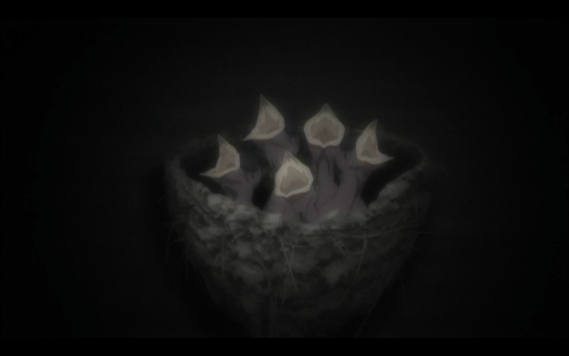알에서 깨어나 새끼일때 둥지에 떨어진 자신을 어느 인간이 둥지로 올려줬다고 했다. 그런데 제비 부모는 자신의 새끼에게서 나는 인간냄새로 인해 둥지를 버리고, 함께 부화한 형제들은 하나둘 죽었다. 원망과 슬픔으로 요괴가 된 제비아이는 자신을 유기견으로 알고 밥을 매일 갖다준 인간의 정으로 원망을 버리고 잠들수 있었다고 이야기를 해준다. 다시 댐의 물이 차기전에 그때 그 인간을 다시 보고 싶다는 부탁이었다.